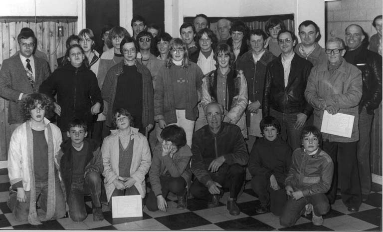 De g. à dr. : Jean-Marie Piérard, Marc " Mozart " Yernaux, Eddy Dehu?, Isabelle Stennier, Johan Van Der Meersch, Anne Van Der Meersch, Jean Thomas?, Steve Scaillet, David Denil, Marc Piérard, Alain Stennier, Alain Lechat, Paul Thomas?, Maryline Polomé, Denis Scaillet, Géraldine Piérard, Philippe Matagne, Guy Stennier, Eric Set-Marie, Eugène Revers, Christine Genot, Alfonse Nuytiens, David Van Wynsberghe, Amour Matagne, Fabrice Deroo, Rudy Dewannemaker, Romain Barthels, Pierre Lejoly, Laurent Piérard, Clément Blavier, Edgard Polomé, René Deroo.